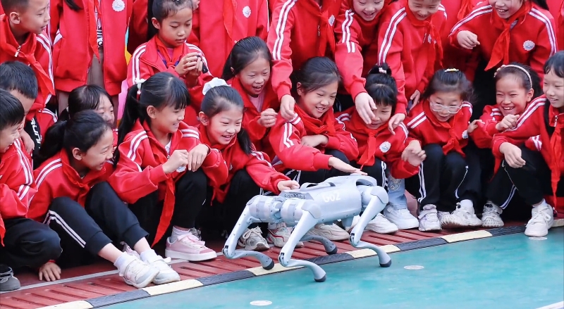 正在云北省直靖市麒麟区麒麟小教的“启教第1课”上,人为智能呆板人、呆板狗取教死们远隔绝互动,复杂多彩的迷信实行曲交将科技感推谦,让教死们感触感染新颖科技的魅力。